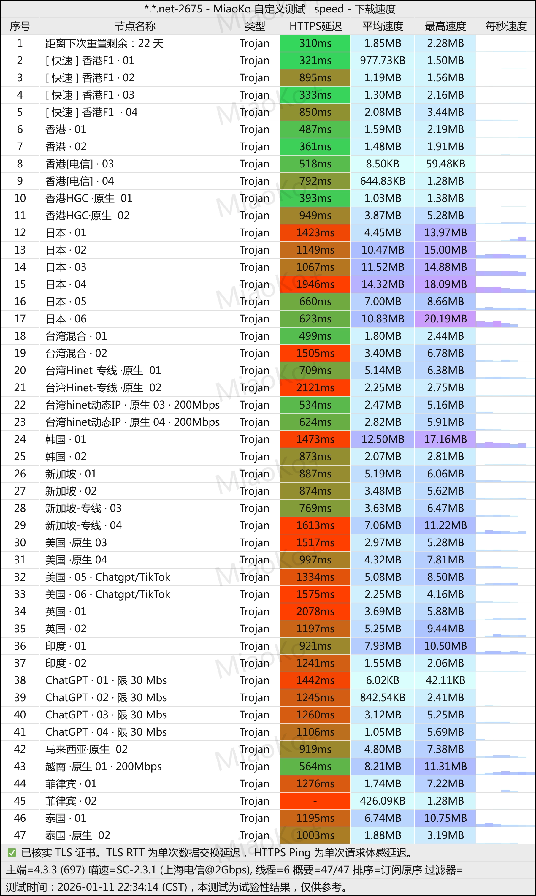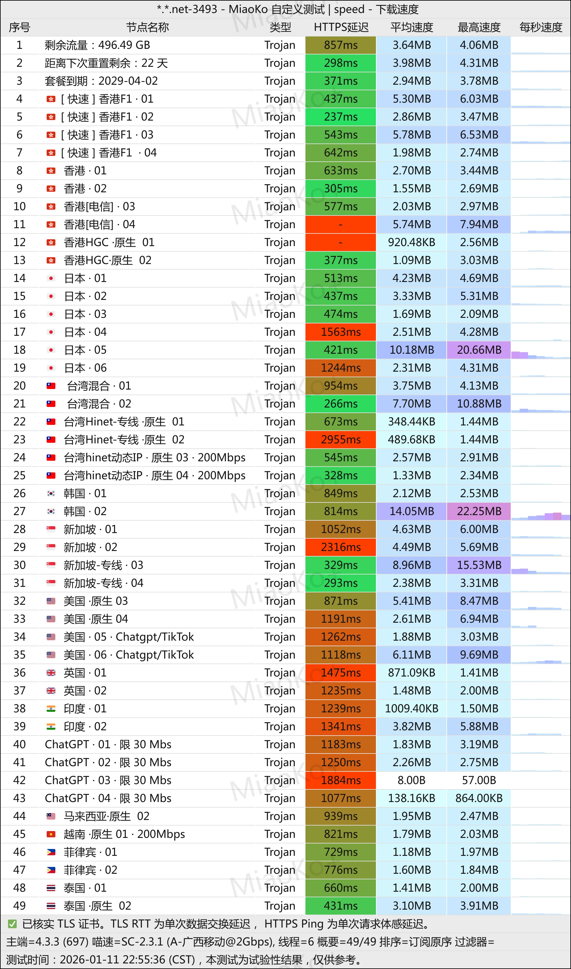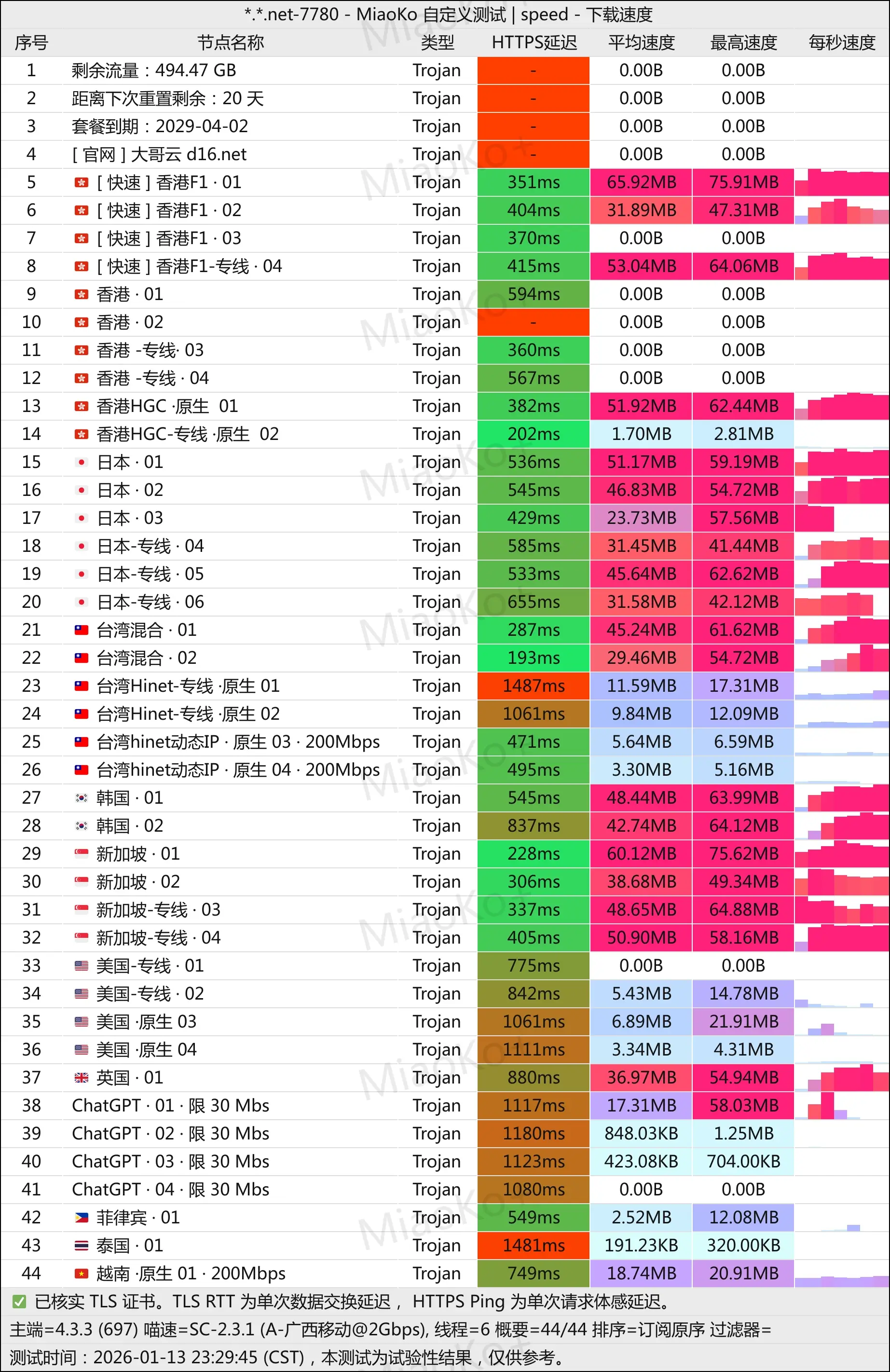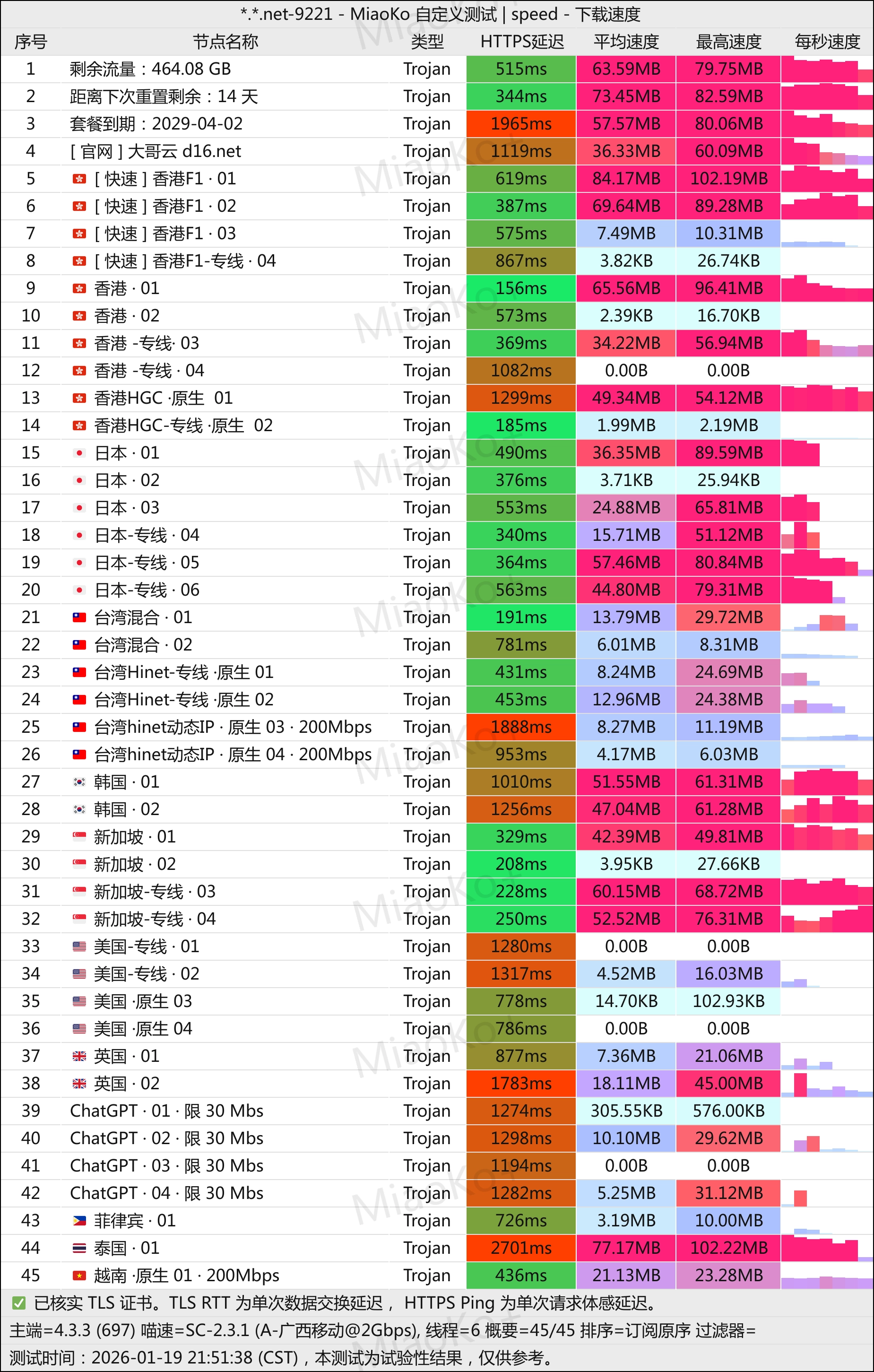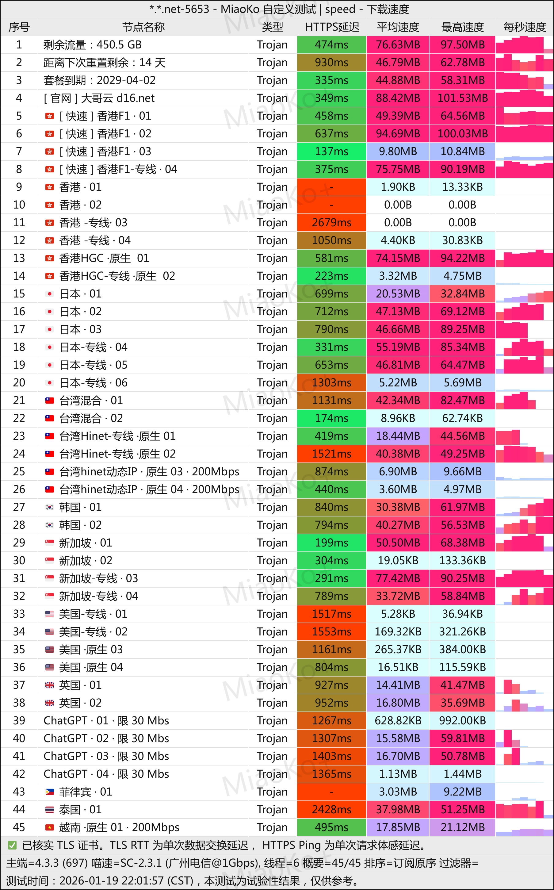 3年老机场了。Trojan协议中转线路机场。线路是G口湖南联通和广州移动。机场主在东南亚,不用担心跑路。在我监督下 ,更换了机器,测速好看了。单条2G带宽起。