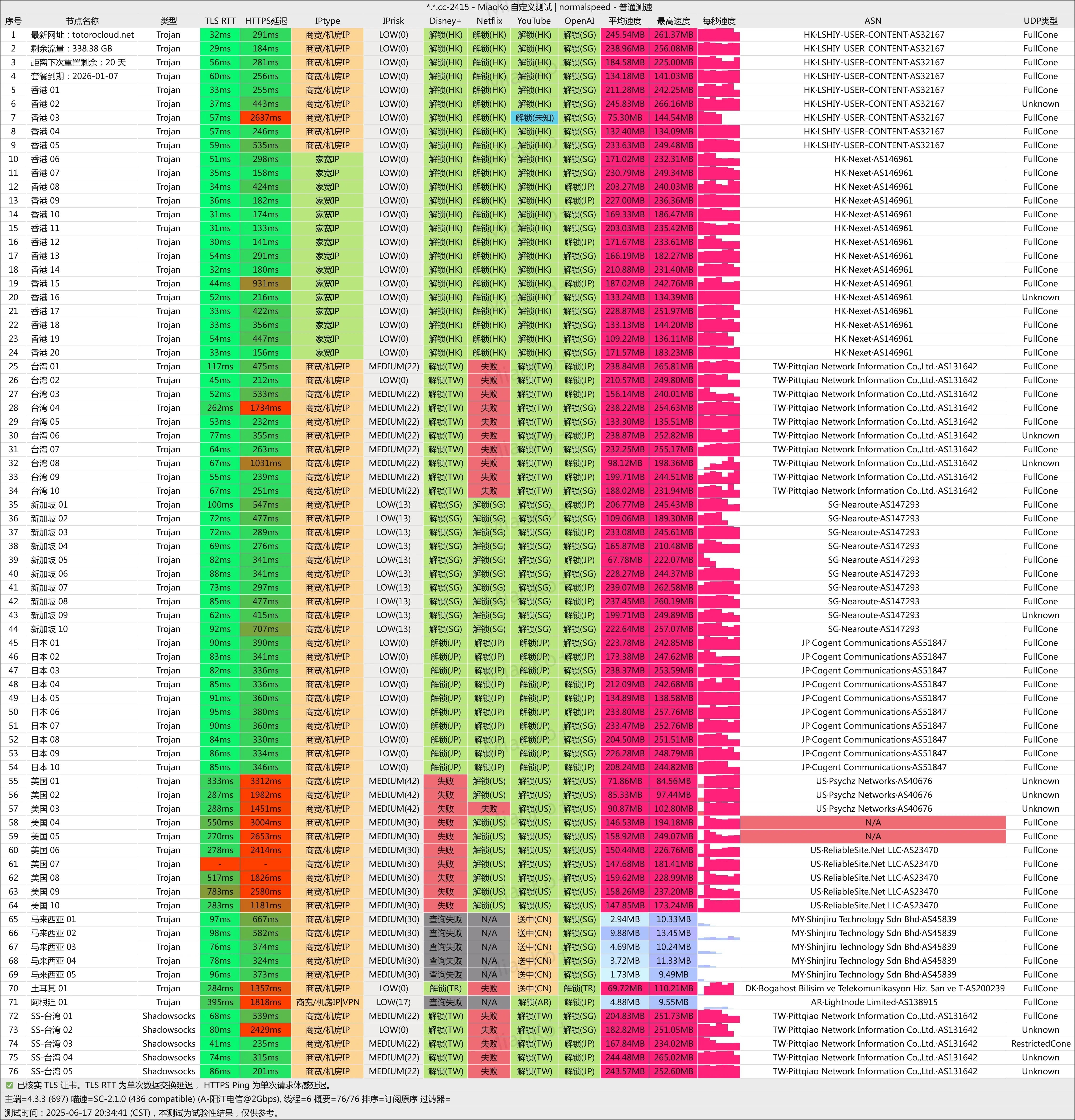 中转trojan机场。观察挺久,感觉速度都挺好。观察了很久才推荐的。值得推荐。而且也退出了TG宣传。更加稳定。注意:speedcat、龙猫云、Flyingbird应该是相同线路类型。入口都一样。