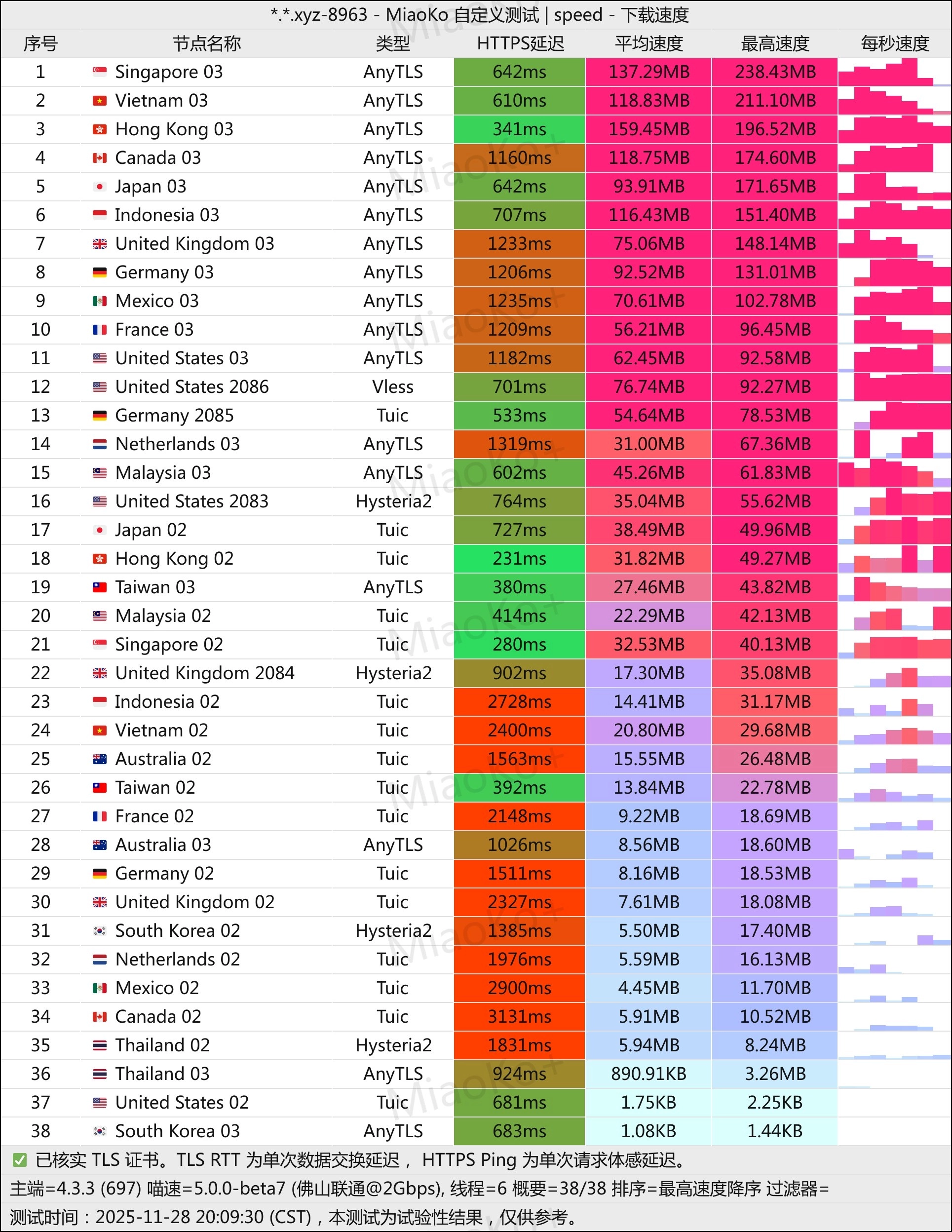 - AnyTLS 快 = TCP 不限速 + Speedtest 是 TCP 的天下